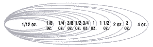 42.52 гр (1.5oz) 56.7 гр. (2oz) 85,05 гр. (3oz) 113.4 гр. (4oz) |